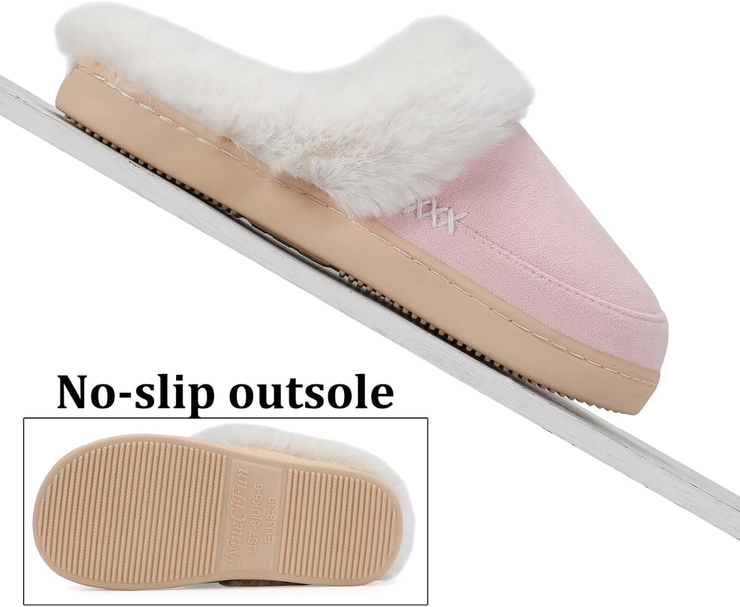 NineCiFun Women's Comfy House Slippers Memory Foam Fuzzy Bedroom Scuffs Slippers Indoor Outdoor Anti Skid Home Slippers Shoes with Warm Plush Lining 39/40 EU Baby Pink
