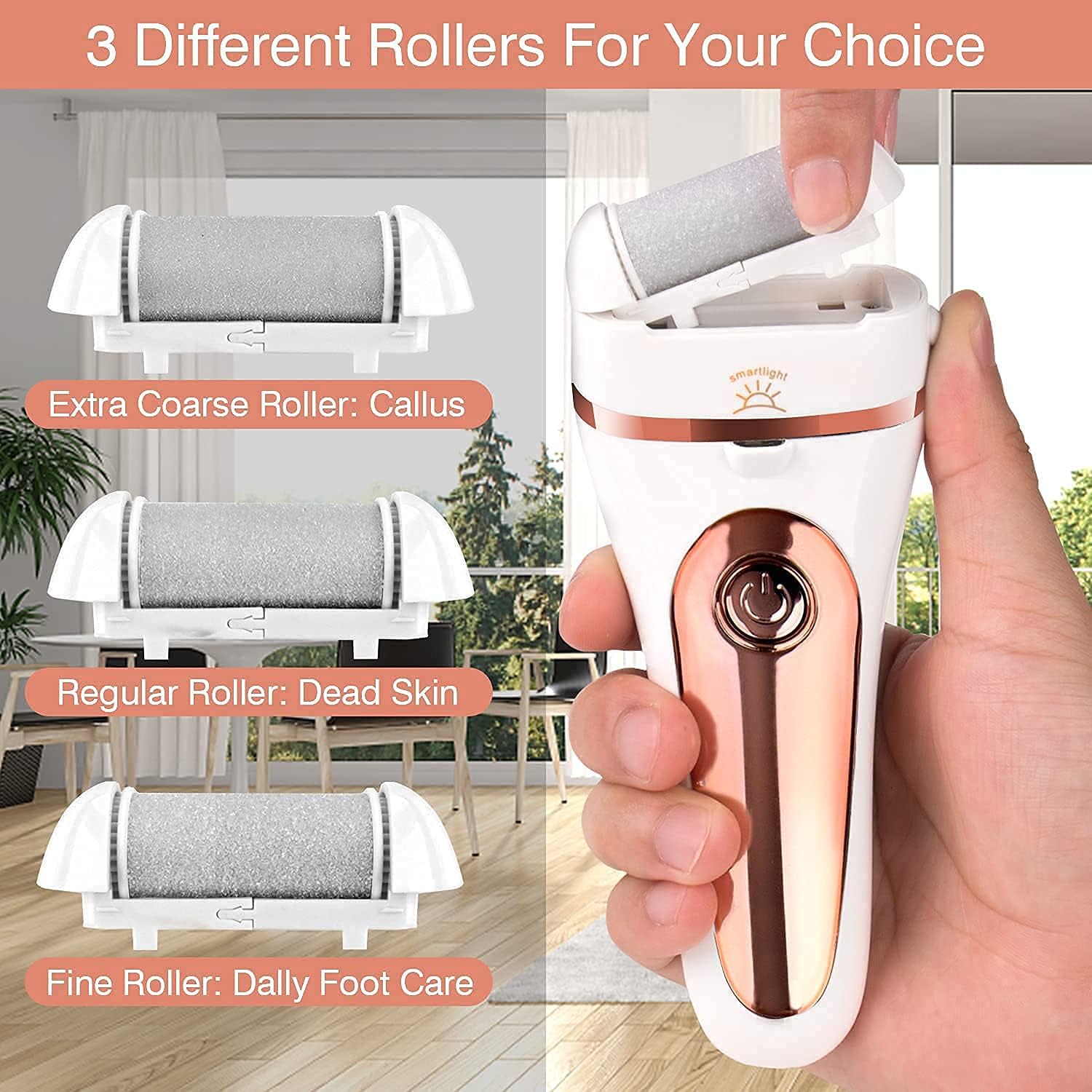ZILL Callus Remover for Feet - Rechargeable Electric Callus Remover Kit with 3 Coarse Roller Heads Smart LED Light for Dead,Hard Cracked Dry Skin