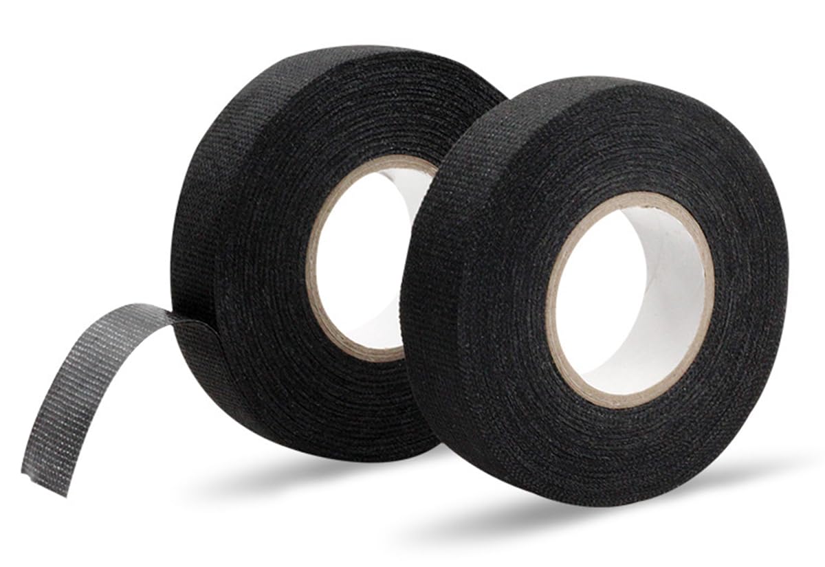 ECVV 2 Rolls Automotive Wire Harness Tape,15 Meter Electrical Insulation Black Self-Adhesive Fabric Noise Reduction Wrap Cord Cloth, High Temp Wiring Loom Protect Fix Cable