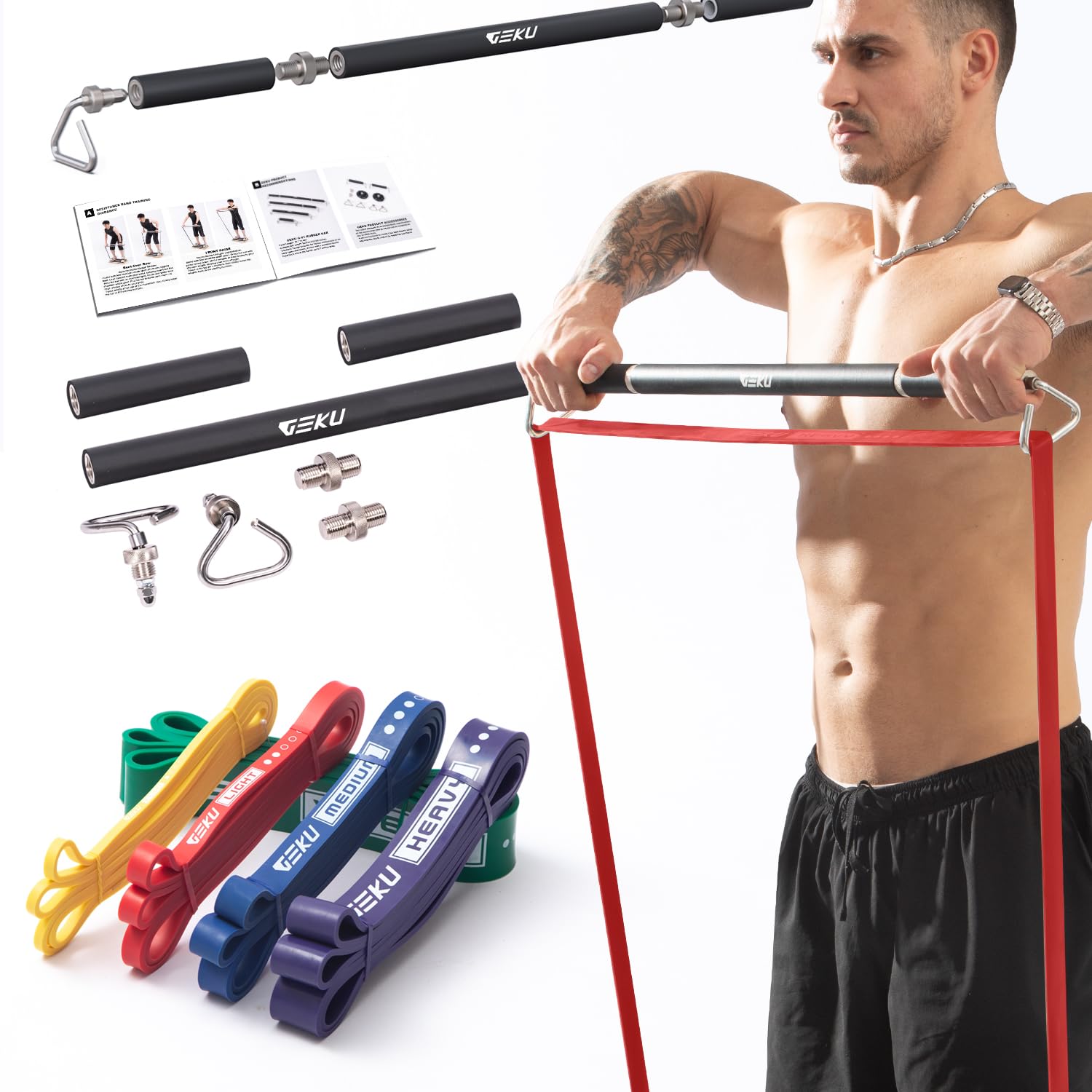 Resistance Band Bar, 41.5' Heavy Duty Workout Bar with ABS Wheel Accessories for Core Muscle Training, Resistance Band Training, Home Workout, Max Load 800 Lbs Resistance Band Bar+5 Bands Set