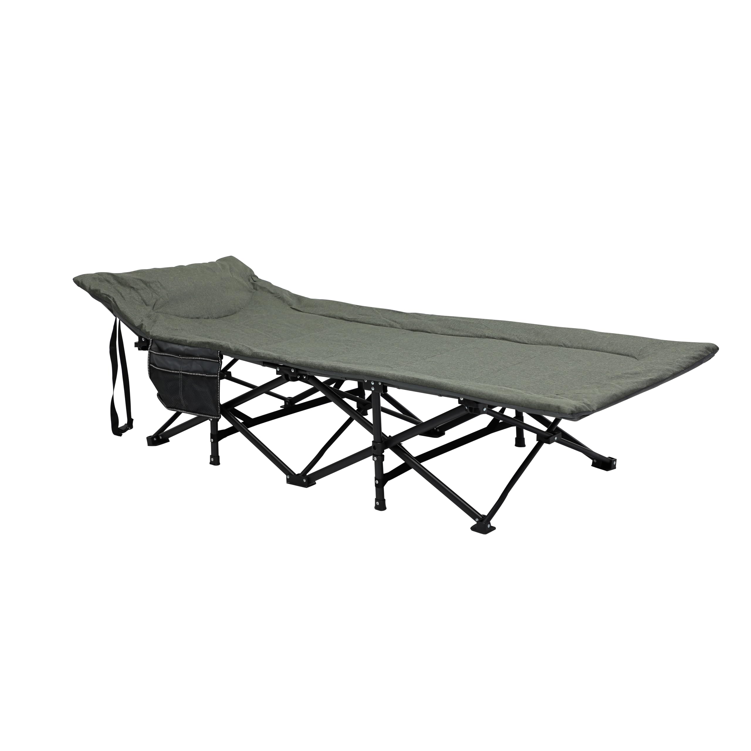 Multi Home Furniture Dark Grey Folding Camping Bed with Padded Mattress | Portable Heavy-Duty 185×70×40 cm Outdoor Folding Bed with Side Pocket | Foldable Bed for Camping, Hiking, Beach & Desert Trips