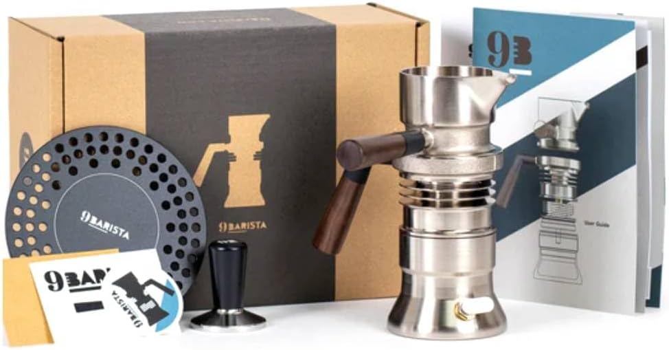 9Barista Manual Stovetop Espresso Machine - Compact & Portable, Premium Brass & Stainless Steel, Twin-Boiler System, 9 Bar Pressure, 20g Capacity, Makes 1-2 Cups (40ml) of Coffee