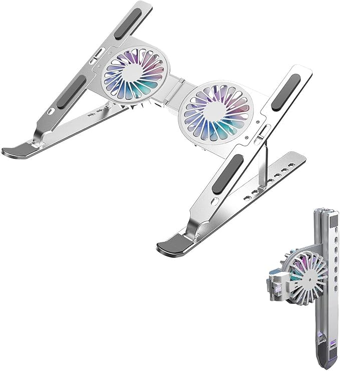 C9 Pro 7-Speed Adjustable Laptop Cooling Stand - Portable Foldable Aluminum Cooling Pad for 13-17 Inch Laptops/Tablets, Ergonomic USB-Powered Notebook Cooler with Silent Fans (Silver)